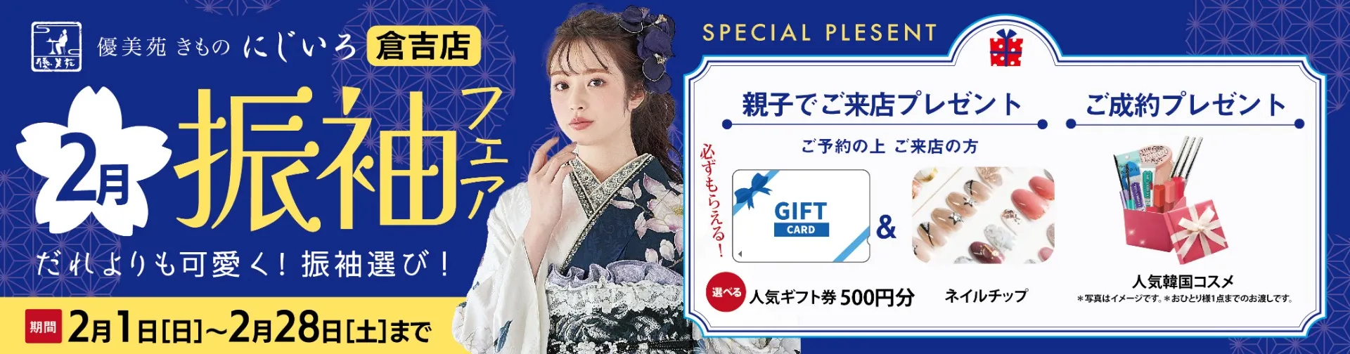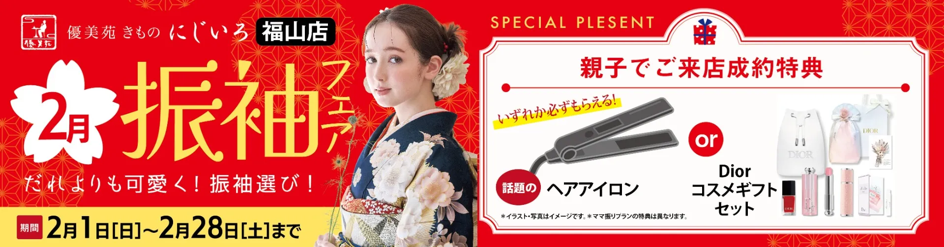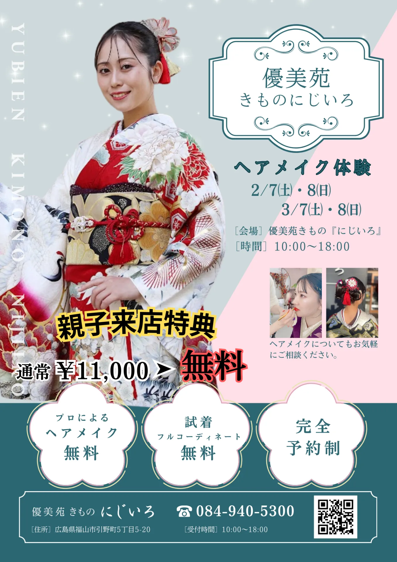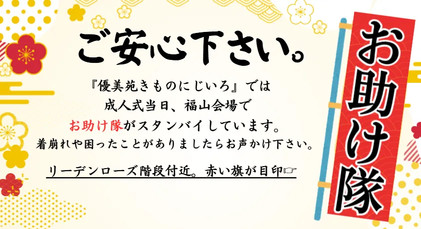 高品質な振袖や袴の販売とレンタルを行い、成人式や特別なイベントをあらゆる面からサポートしております。また、ご自宅や会場近くの提携施設で準備をスムーズに進められるよう福山にてお手伝いしています。